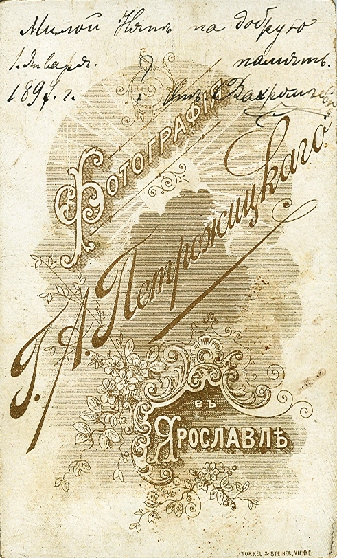 И среди семейных фото я обнаружила Варфоломея Александровича Вахромеева, известного российского музыковеда; по его учебнику Элементарной теории музыки до сих пор занимаются все дети музыкальных школ. У него я училась в Детской муз.школе училища при консерватории в Москве в 1957-60 годах. И из надписей на фото, и из личных бесед с ним выяснилось, что моя бабушка, Елена Павловна Бурыкалова, была его няней!! Надпись на фото датируется 1897м годом, и изображён мальчик лет 5-7, а официально известные даты жизни Варфоломея Александровича -1904 – 1984. Абсолютная загадка!! Может быть, кто-то поможет её раскрыть?!