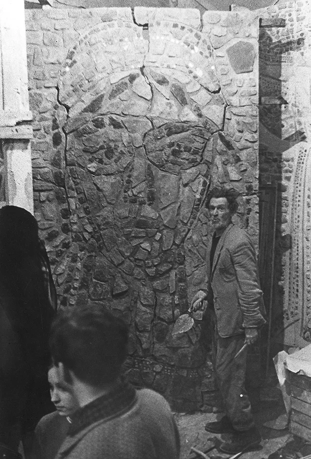 Он более всего ценил и оберегал свою творческую свободу, и всегда был очень тактичен и внимателен по отношению к окружавшим его молодым художникам. Делал мозаики из обычного камня, из больших булыжников, которые собирал у себя под ногами в старую хозяйственную сумку, с которой не расставался. Поскольку бетонную основу для мозаик и штукатурку для фресок делал сам, а перчаток не признавал, его кожа на пальцах была всегда потрескавшаяся и болела.